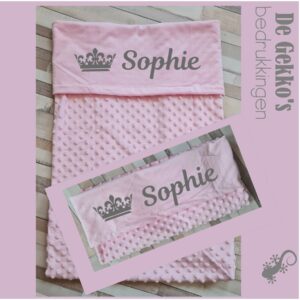 Prachtige babydeken met naam bedrukt.