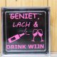 Decoratie blok geniet lach & drink wijn