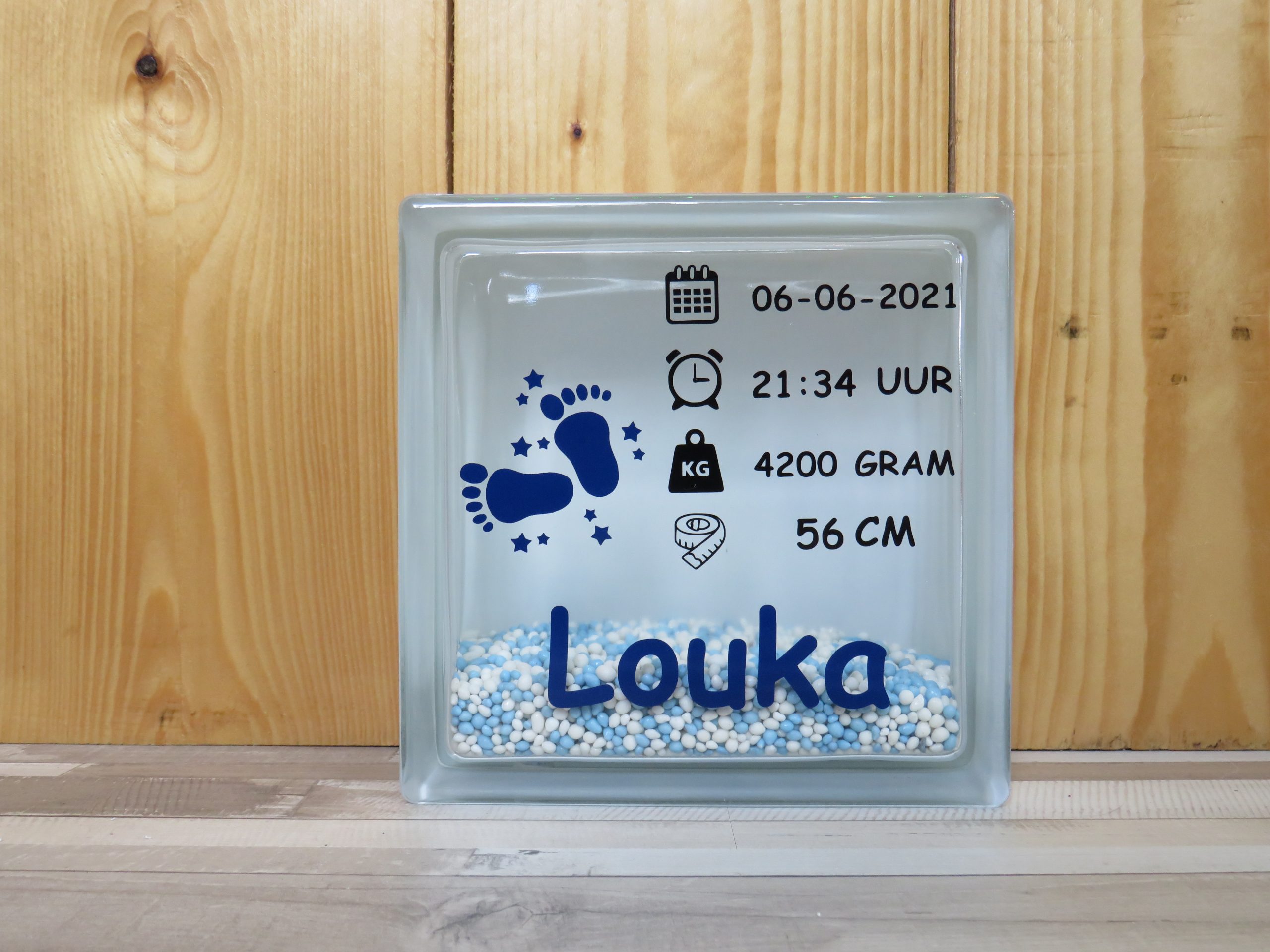Glasblok geboorte met muisjes
