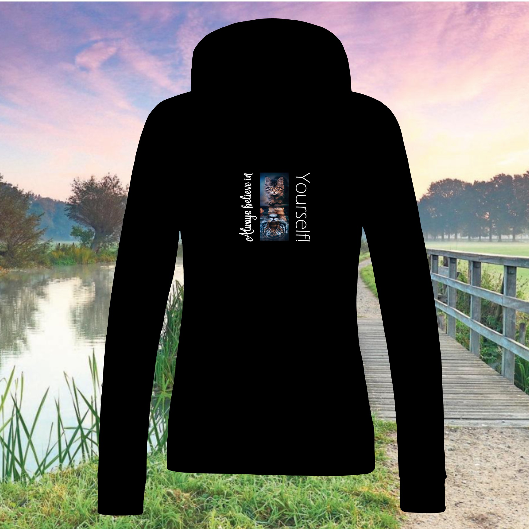 Hoodie always believe in yourself (witte tijger)
