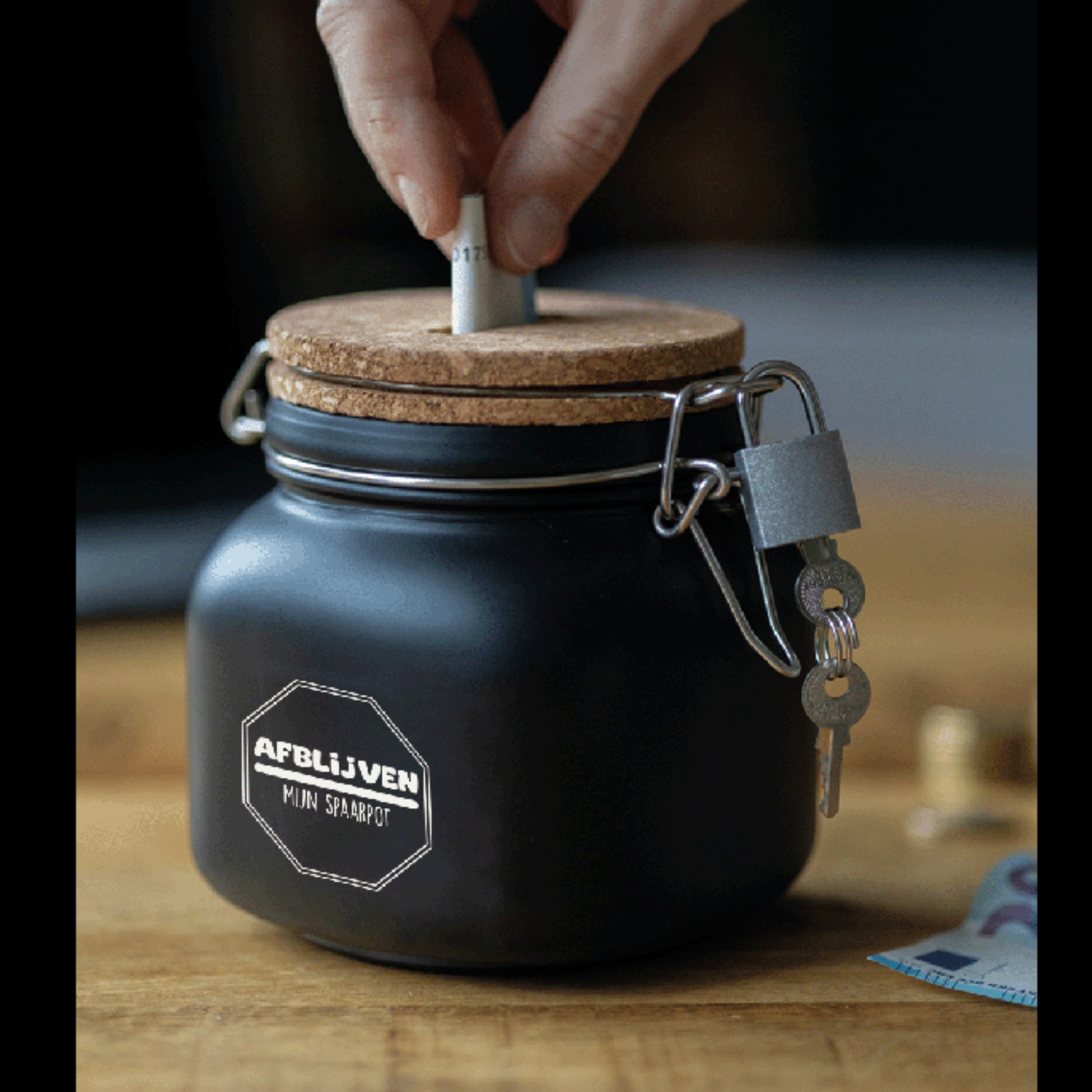 De luxe spaarpotten van Paper Dreams zijn perfecte cadeaus voor bijvoorbeeld Vaderdag, Moederdag of bijvoorbeeld een verjaardag. Deze luxe spaarpot – afblijven is gemaakt van glas, is zwart van kleur
