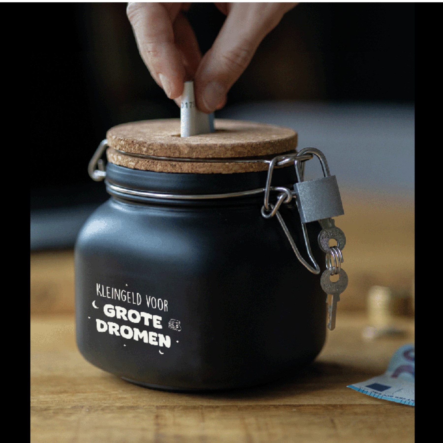 De luxe spaarpotten van Paper Dreams zijn perfecte cadeaus voor bijvoorbeeld Vaderdag, Moederdag of bijvoorbeeld een verjaardag. Deze luxe spaarpot – grote dromen is gemaakt van glas, is zwart van kleur