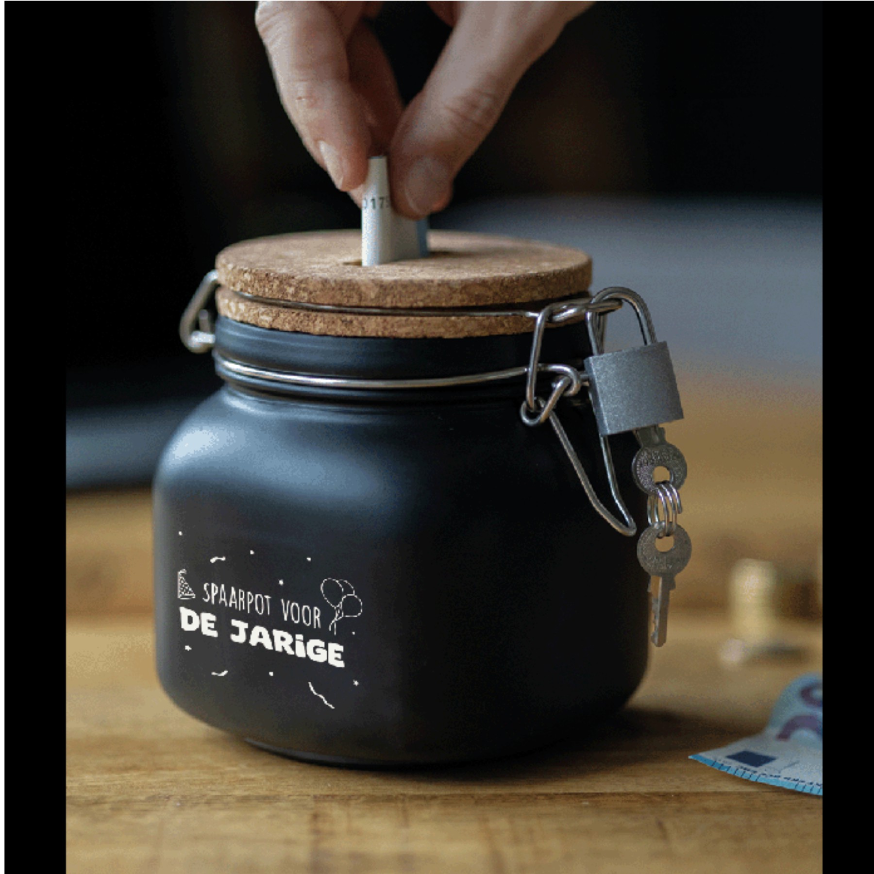 De luxe spaarpotten van Paper Dreams zijn perfecte cadeaus voor bijvoorbeeld Vaderdag, Moederdag of bijvoorbeeld een verjaardag. Deze luxe spaarpot – jarige is gemaakt van glas, is zwart van kleur