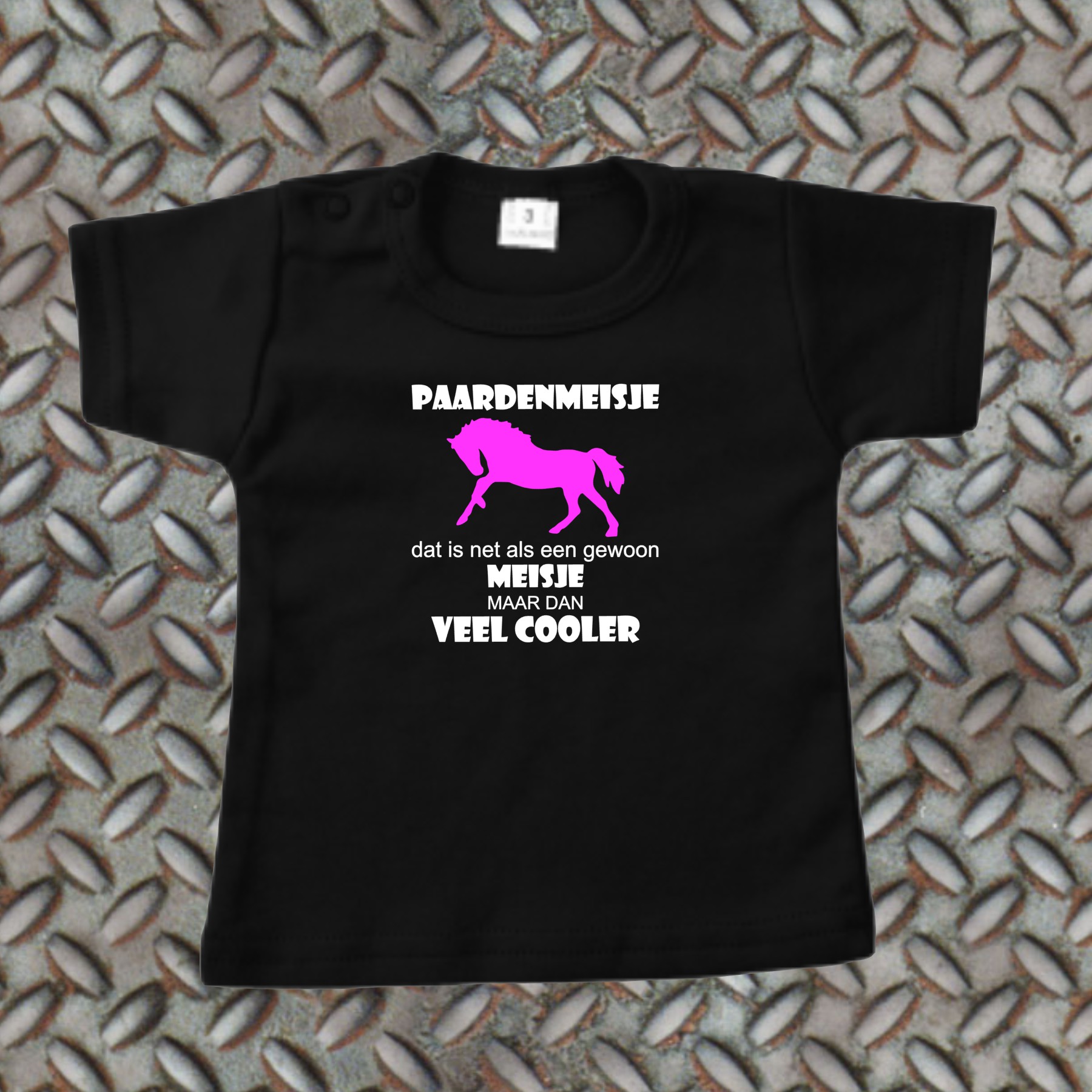 T-shirt met tekst ‘paardenmeisje dat is net als een gewoon meisje maar dan veel cooler’